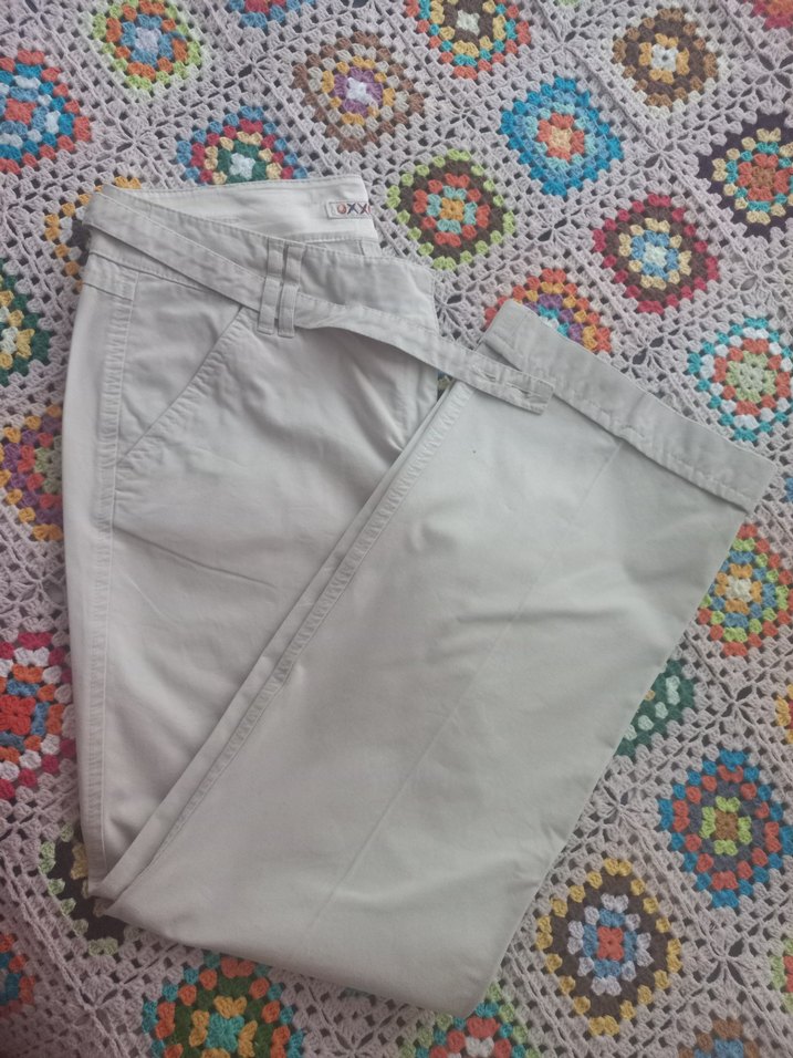 pamuklu kadın pantolon, normal boyda ve kemerli. Rahat kesimiyle gündelik dış mekan kullanımı için uygundur.