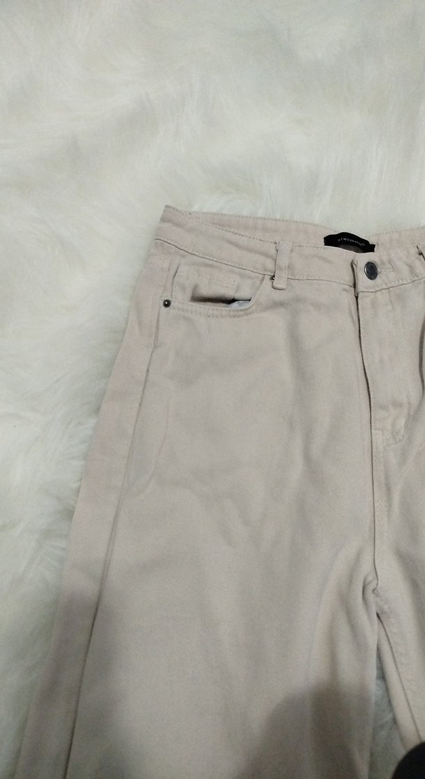 Bej renkli pamuklu kumaştan, normal kesim ve midi boyda, minimal tarzda günlük kullanım için uygun pantolon.