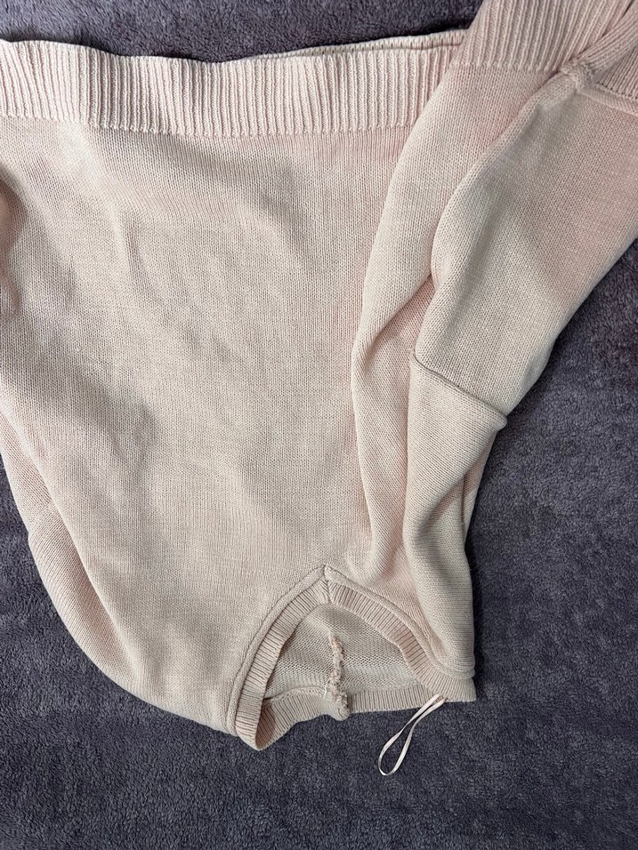 Bej renkli, pamuklu, örme kumaştan yapılmış, bisiklet yaka ve uzun kollu, salaş kesim kazak. Orta boy midi uzunlukta, sade ve rahat bir tarz sunar.