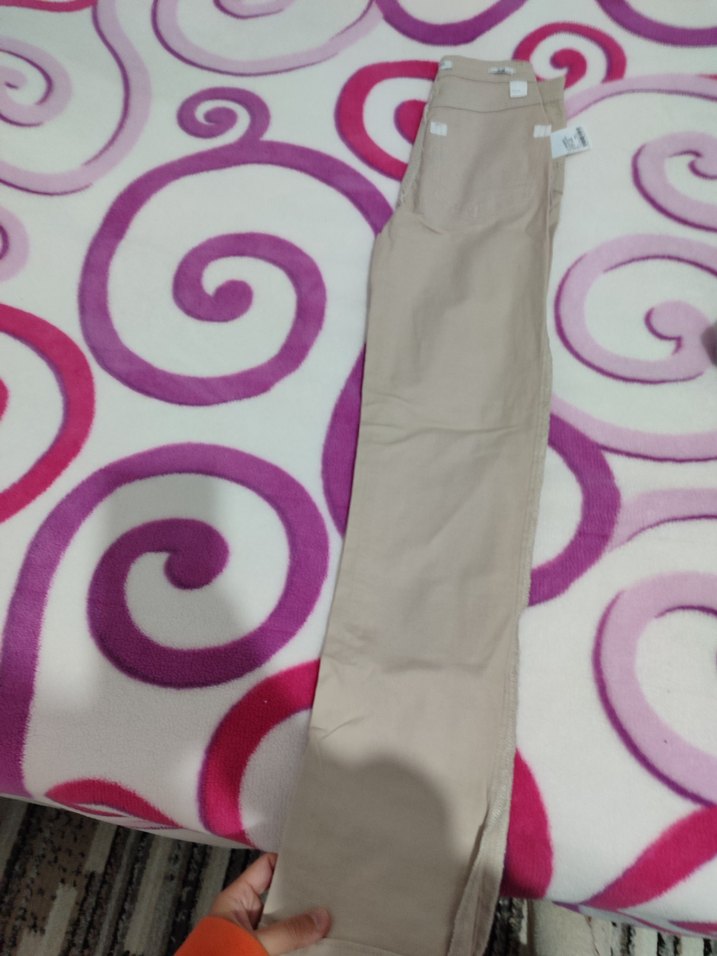 Bej renk, midi boy, elastik bel özellikli kadın kumaş pantolon. Rahat kesimi ve hafif sentetik kumaşıyla günlük sokak stiline uygun.