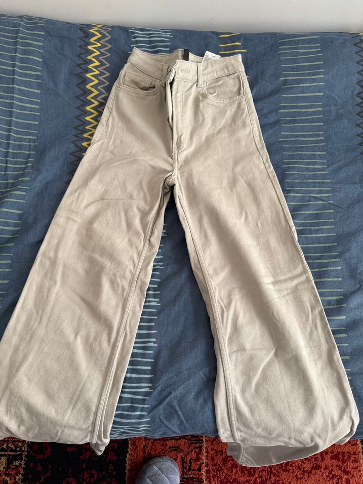 Yumuşak kumaştan, düz desensiz, rahat kesim bej kadın pantolon. Günlük kullanıma uygun zahmetsiz şıklık sunar.