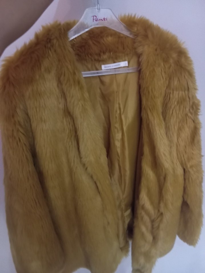 Bej renkli peluş ürk . yurt dışından hediye geldi fakat 1 kez giyildi . Lve XL uyumlu.