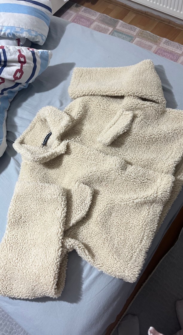 Bej renkli, uzun kollu ve notched yaka detaylı kadın midi ceketi. Yumuşak ve sıcak kumaştan, peluş detaylı ve bol kesimdir.