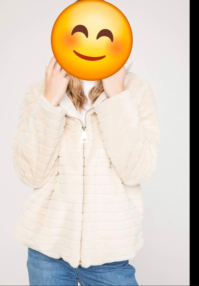Bej renkte, yumuşak peluş kumaştan yapılmış, uzun kollu ve salaş kesim kadın mont. Yuvarlak yakalı ve kürk detaylı, günlük kullanıma uygun.