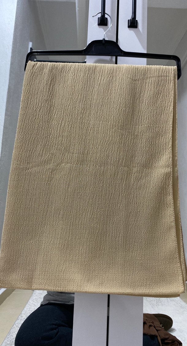 Bej renkte, parlak görünümlü, piliseli tasarıma sahip kadın şalı. Yumuşak sentetik kumaştan, minimalist ve çağdaş bir stil sunar. ✨