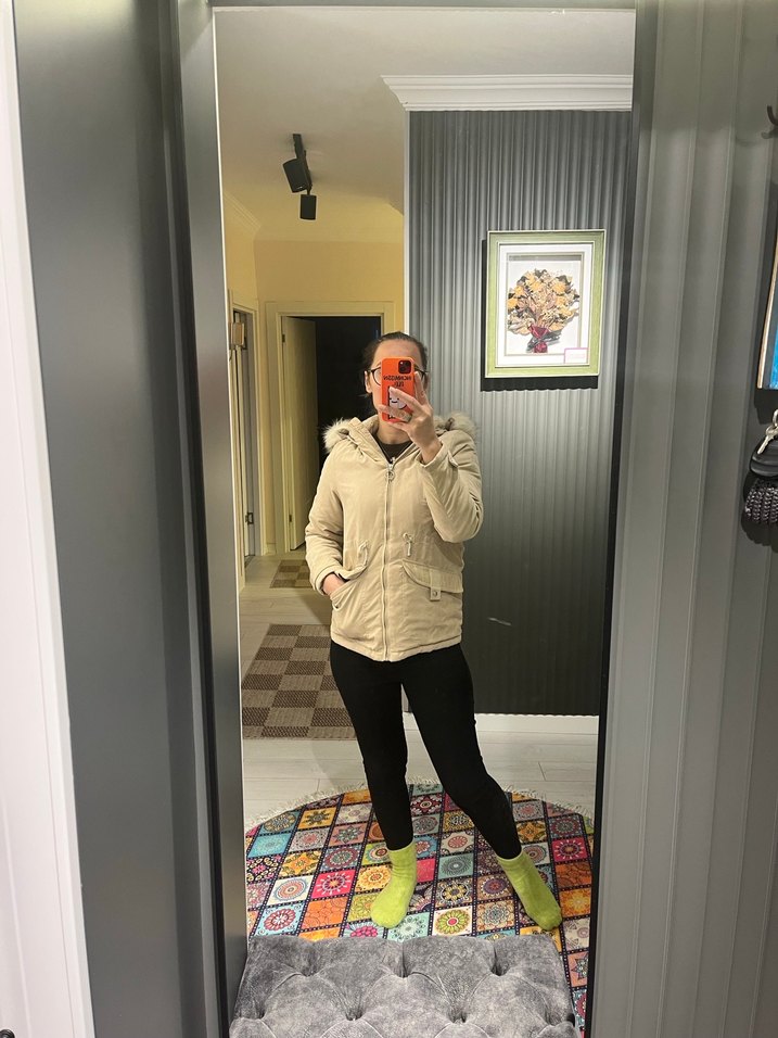 Bej renkli, puff detaylı ve yüksek yakalı kadın kışlık mont. Yumuşak ve sıcak kumaştan, uzun kollu ve midi boyda, gündelik kullanıma uygun.