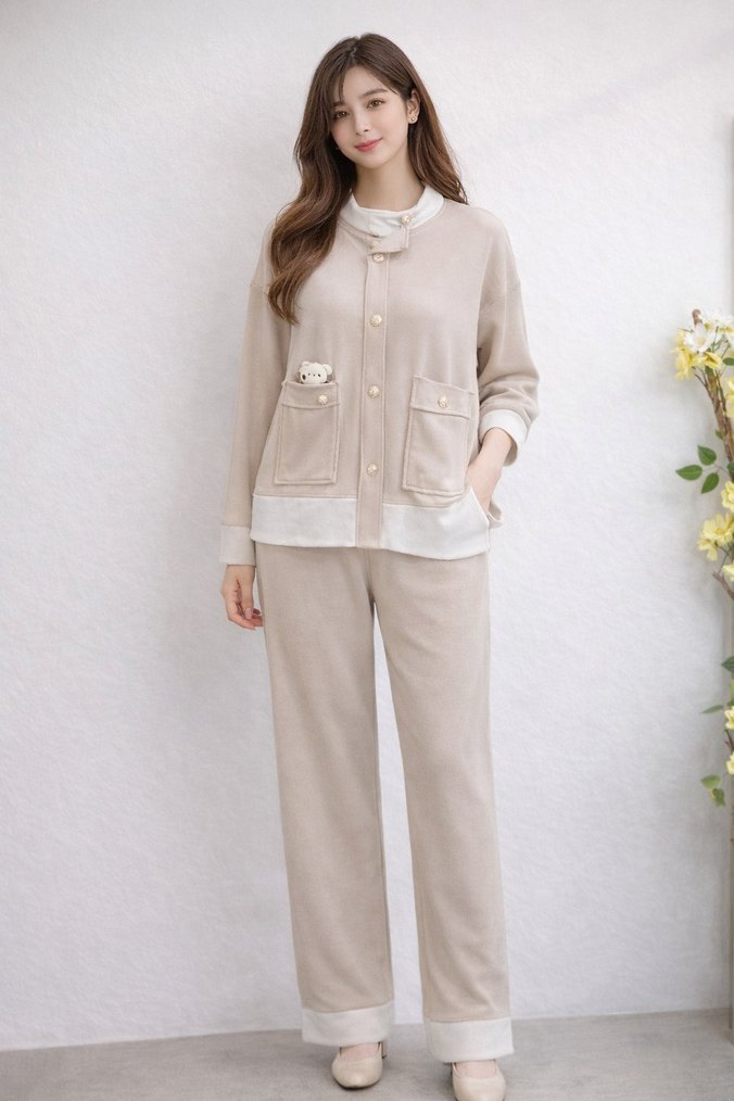 Bej renkli, uzun kollu ve midi boy rahat kesim Düğmeli üst ve cepli detaylarla konforlu kullanım sağlar.