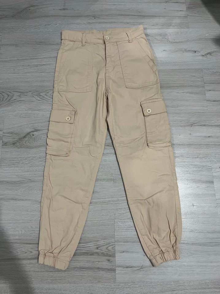 Bej Kadın Rahat Kesim Street Wear Kumaş Pantolon