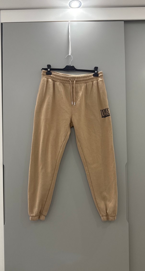 Bej renkte, rahat kesim ve normal boyda, yumuşak kumaştan yapılmış kadın sweatpant. Lastikli bel ve bilek uçları ile günlük kullanıma uygundur.