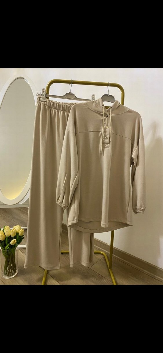 Bej Kadın Rahat Kesim Uzun Eşofman Takımı