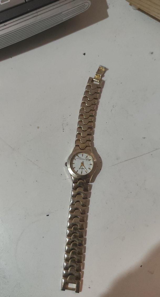 Bej renkli metal kordona sahip, minimalist tasarımlı kadın saati. Küçük yuvarlak kadranı ve sade görünümü ile zamansız bir model. ⌚