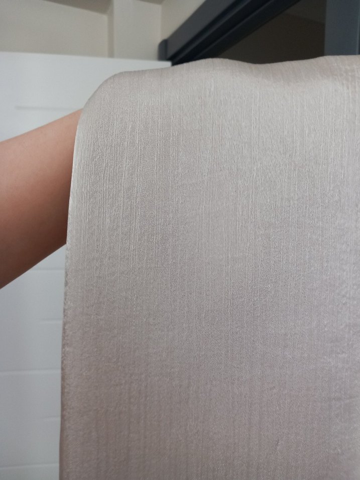Yumuşak kumaştan, hafif gri tonlu bej renkli kadın şalı, çağdaş tarzda, katmanlama için uygun.