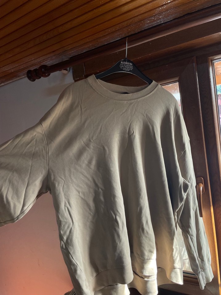 Bej renkli, bisiklet yaka ve uzun kollu bu sweatshirt, rahat bir kesime ve midi uzunluğa sahiptir. Yumuşak keten kumaştan üretilmiş, gündelik ve şık bir sokak stili sunar. 3xl