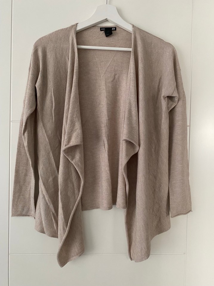 Bej kumaştan, salaş kesim ve drapeli tasarıma sahip uzun kollu midi hırka. Günlük kullanıma uygun, sade ve modern tarzda, rahat bir parçadır.