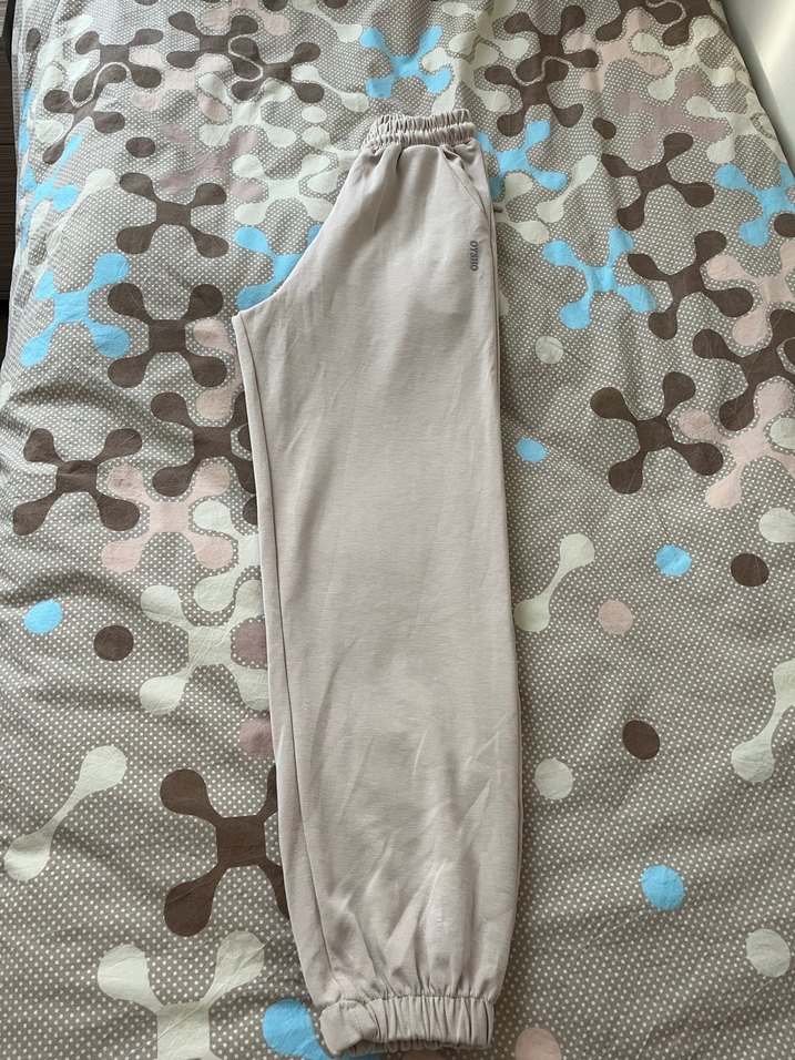 Yumuşak sentetik kumaştan yapılmış, salaş kesim bej sweatpant. Drapeli tasarım ve lastikli paçalarla rahat günlük stil sağlar.