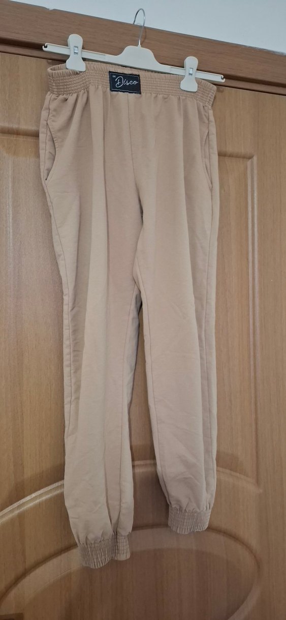 Salaş kesim, bej keten kumaştan yapılmış midi boy sweatpant, gündelik rahat stil için zahmetsiz şıklık sunar. ️