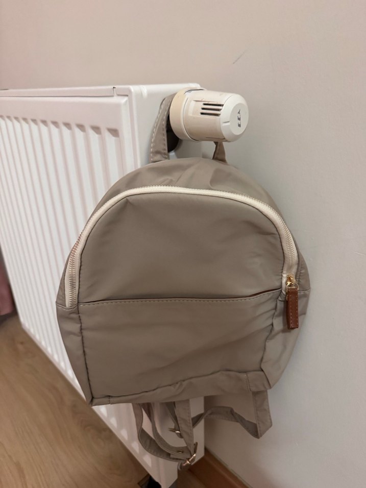 Bej renk, fermuarlı cepleri ve baskılı deseniyle kadın sırt çantası. Sentetik kumaştan, günlük kullanım için minimalist ve sokak stili uyumlu.