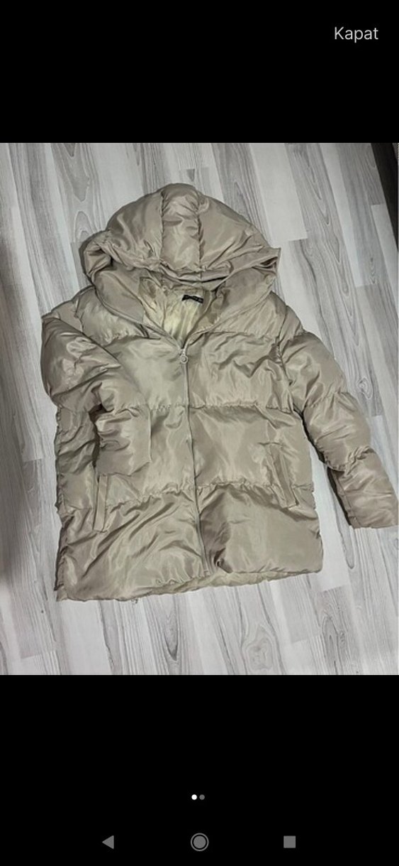 Bej renkli kadın şişme kışlık mont, kapüşonlu ve uzun kolludur. Yumuşak keten kumaştan, normal midi boyunda, sade ve şık tasarıma sahiptir. ❄️