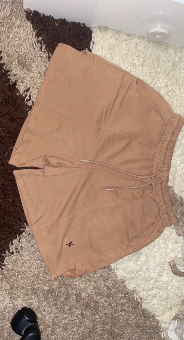 Bej , elastik bel ve bağcık detaylı, bol kesim kadın şort. Hiç giyilmedi bedeni uymadığı için.