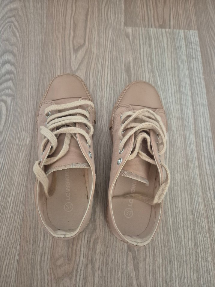 Bej renkli, kadın spor ayakkabısı. Minimalist ve normcore tarzıyla günlük kullanıma uygun, zahmetsiz şıklık sunar.