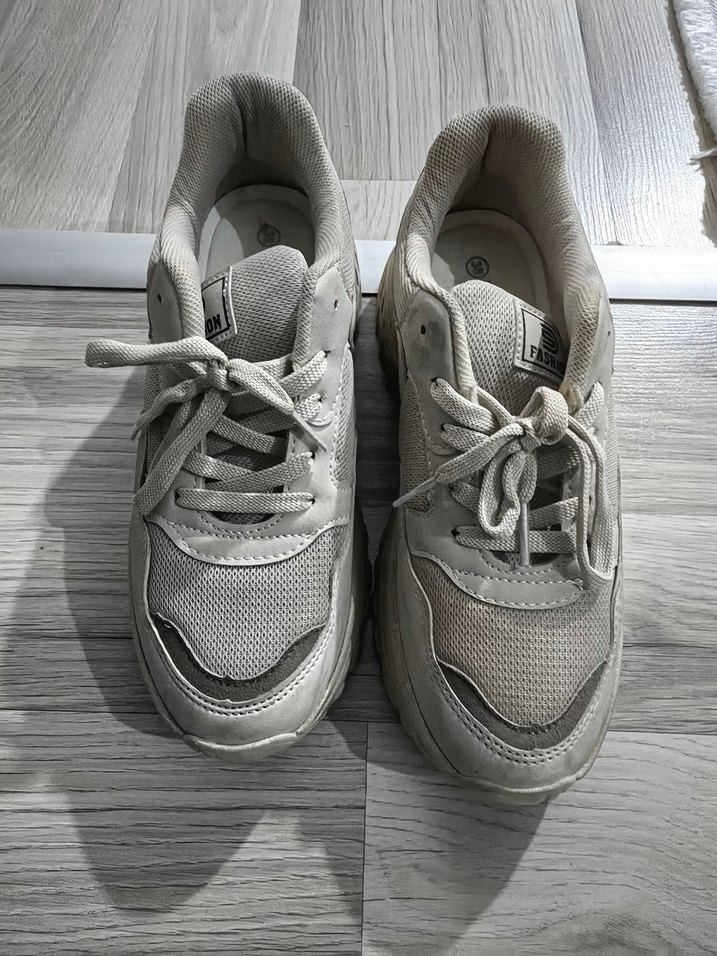 Bej renkli kadın spor ayakkabıları, stiletto topuk ve kauçuk taban ile sportif ve şık bir görünüm sunar. ♀️