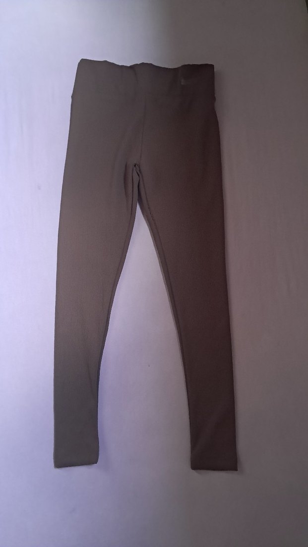 Yumuşak sentetik kumaştan yapılmış, günlük sokak tarzına uygun bej renkli, düz ve dar kesim kadın spor tayt. Rahat ve şık bir görünüm sağlar. Ürün orijinal değildir