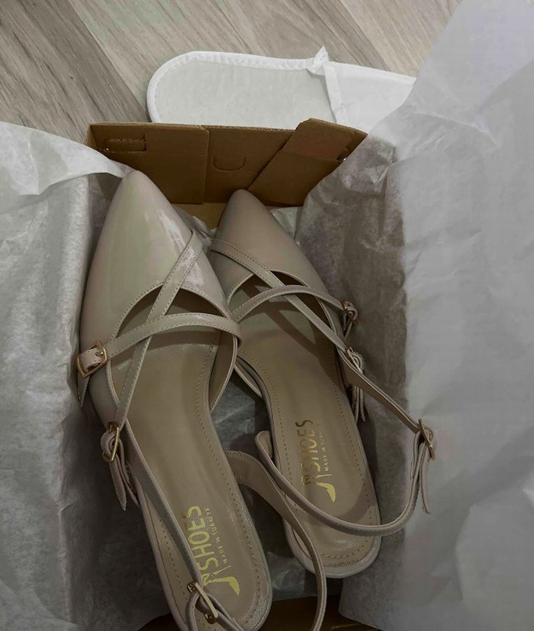 Bej renkte, stiletto topuklu ve tokalı kayışlara sahip kadın ayakkabısı. Minimalist ve çağdaş tasarımıyla günlük kullanıma uygundur.