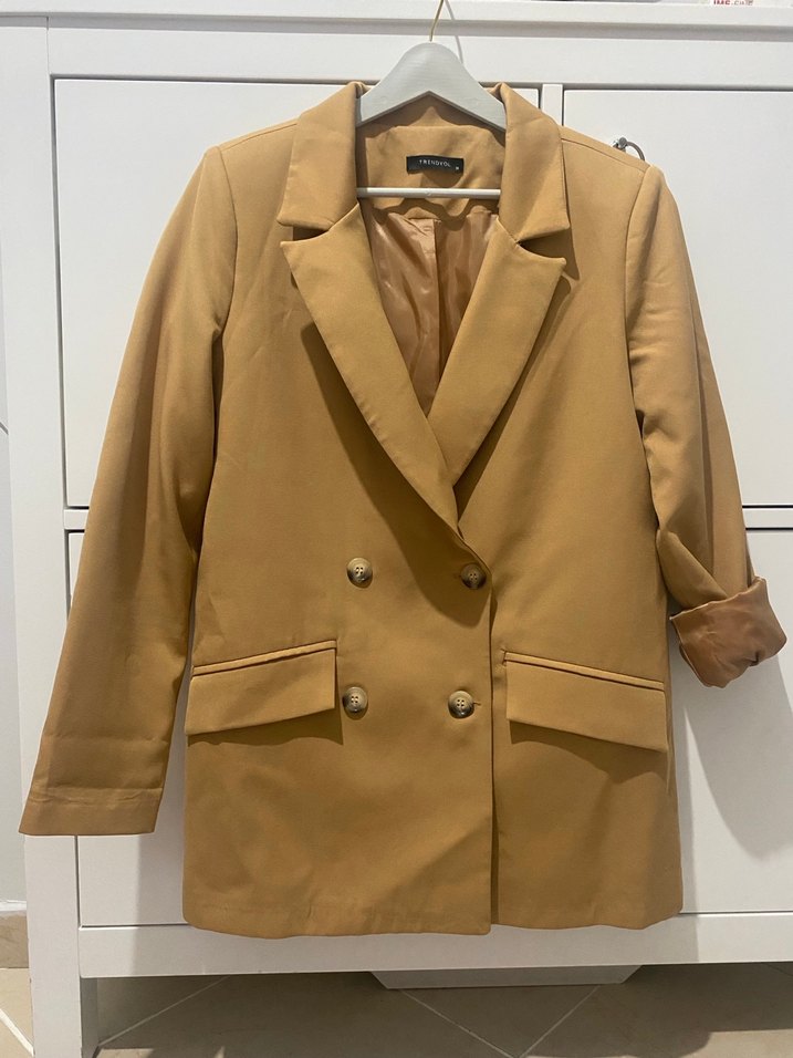 Bej Kadın Süet Düğmeli Midi Blazer - Görsel 1