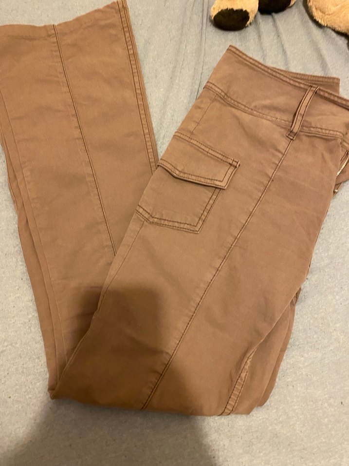Bej renkli, süet kumaştan, normal midi boyda, yan cepli ve desen içermeyen, trend sokak stili için uygun kadın pantolonu.