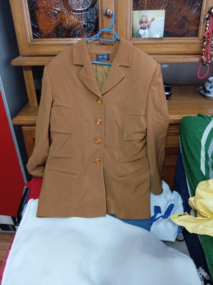 Bej renkli süet kumaştan yapılmış, notlu yakalı ve düğmeli kadın blazer ceket. Normal uzunlukta ve regular fit kesime sahip, ofis ve günlük sokak stiline uygun.boy 72 en 52 cm astarda küçük bi sökük var dikilir uğraşmadım ✨