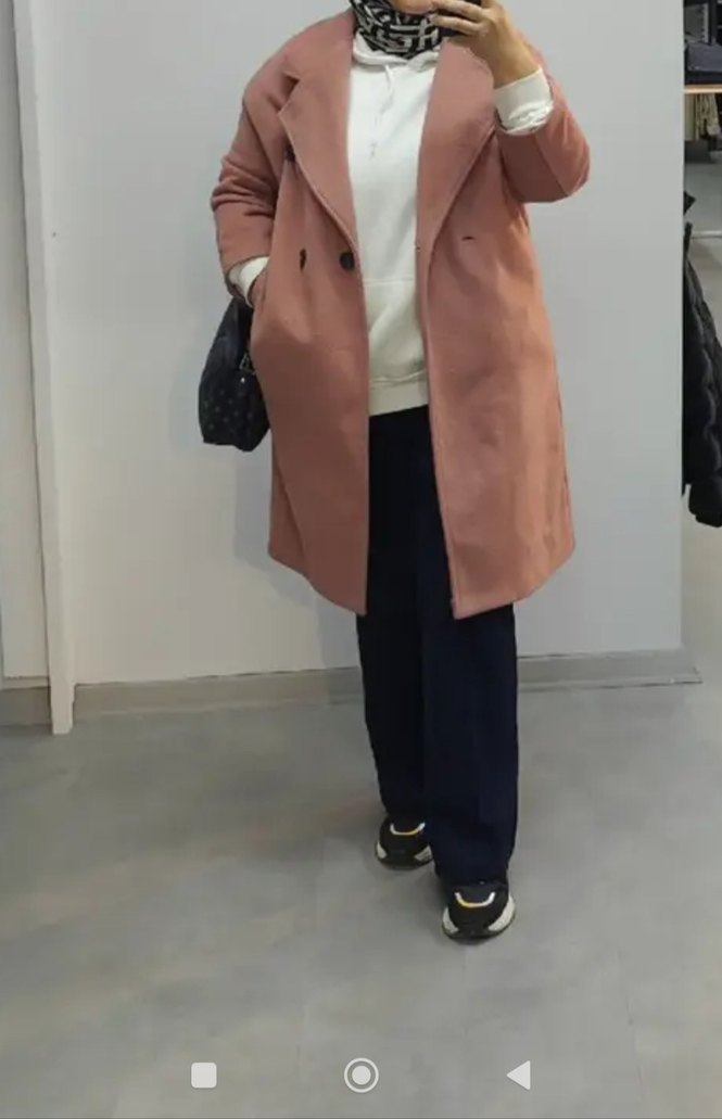 Bej renkte, süet kumaştan, notlu yakalı ve uzun kollu midi kaban. Rahat kesimiyle günlük kullanıma uygun, şık ve rahat bir görünüm sunar.