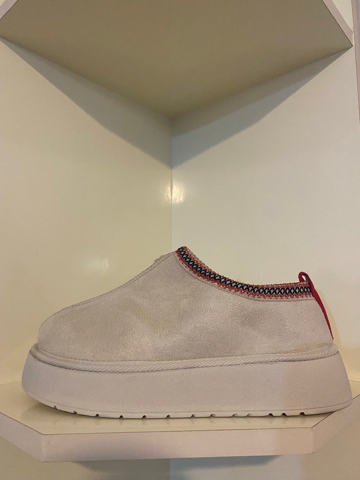 Gri renkli, süet malzemeden yapılmış kadın platform terlik. Rahat sokak stili ve zahmetsiz şıklık sunar, günlük kullanım için uygundur. Tüm numaralar mevcuttur.