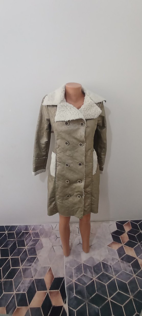 Bej renkte, süet kumaştan yapılmış uzun, düğmeli kaban. Notlu yaka, uzun kollu ve rahat kesimdir. Sokak modasına uygun, günlük kullanıma uygundur.