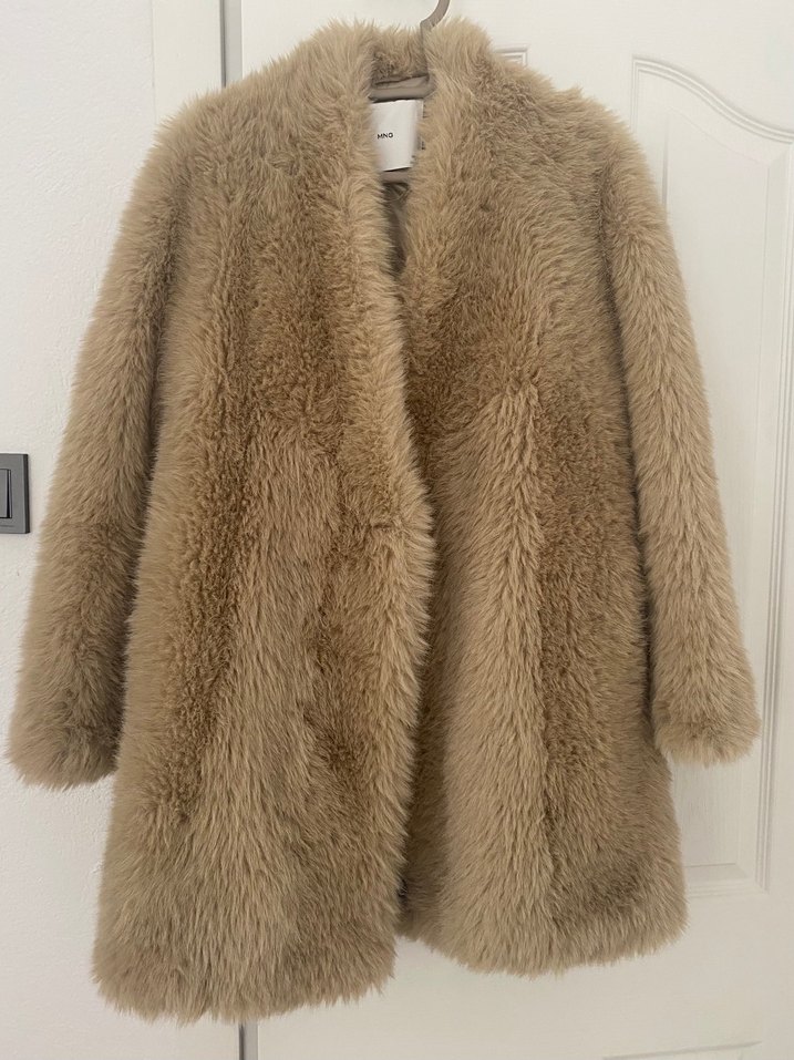 Bej renkli, uzun kollu, suni kürk kaban. Yumuşak yün kumaştan, notalı yaka detaylı, midi boy ve bol kesimdir. Günlük kullanıma uygundur. Xs fakat s-m bedene daha iyi olur kalıp olarak geniş. Fiyat son