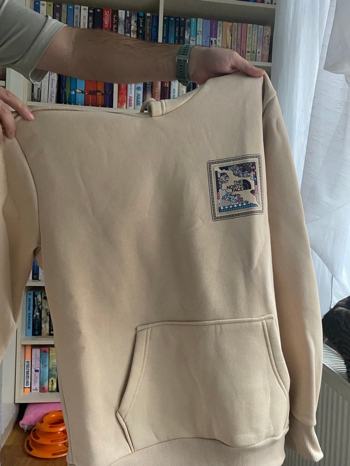 Bej renkli, bisiklet yaka ve uzun kollu kadın sweatshirtü. Baskılı detaylı, fermuarlı ve bol kesim, yumuşak ve sıcak kumaştan üretilmiştir. Rahat sokak stili için uygundur.