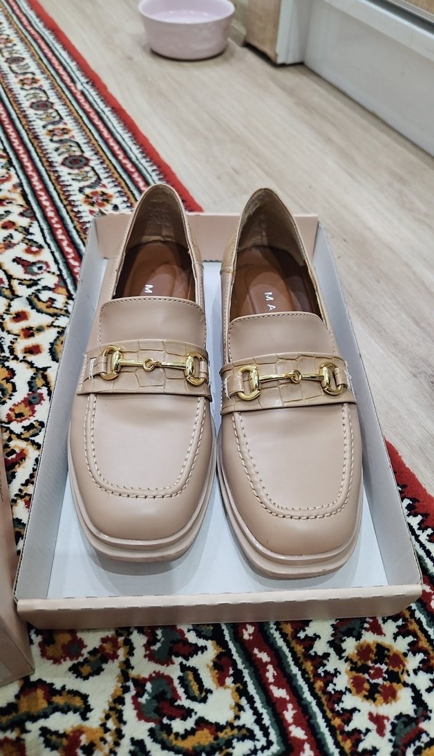 Bej renkli, tokalı ve blok topuklu kadın loafer. Yılan derisi desenli ve kauçuk malzemeden yapılmıştır. Trendy casual ve iş stili için uygundur.