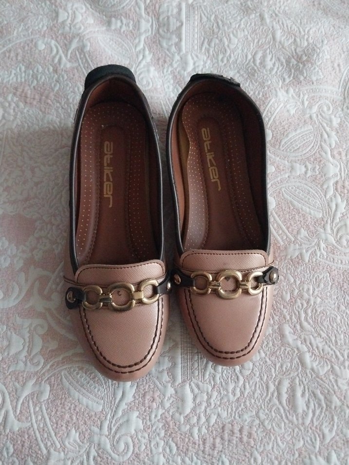 Bej renkte, tokalı ve blok topuklu kadın babetler, yumuşak kauçuk malzemeden yapılmıştır ve günlük kullanıma uygundur.