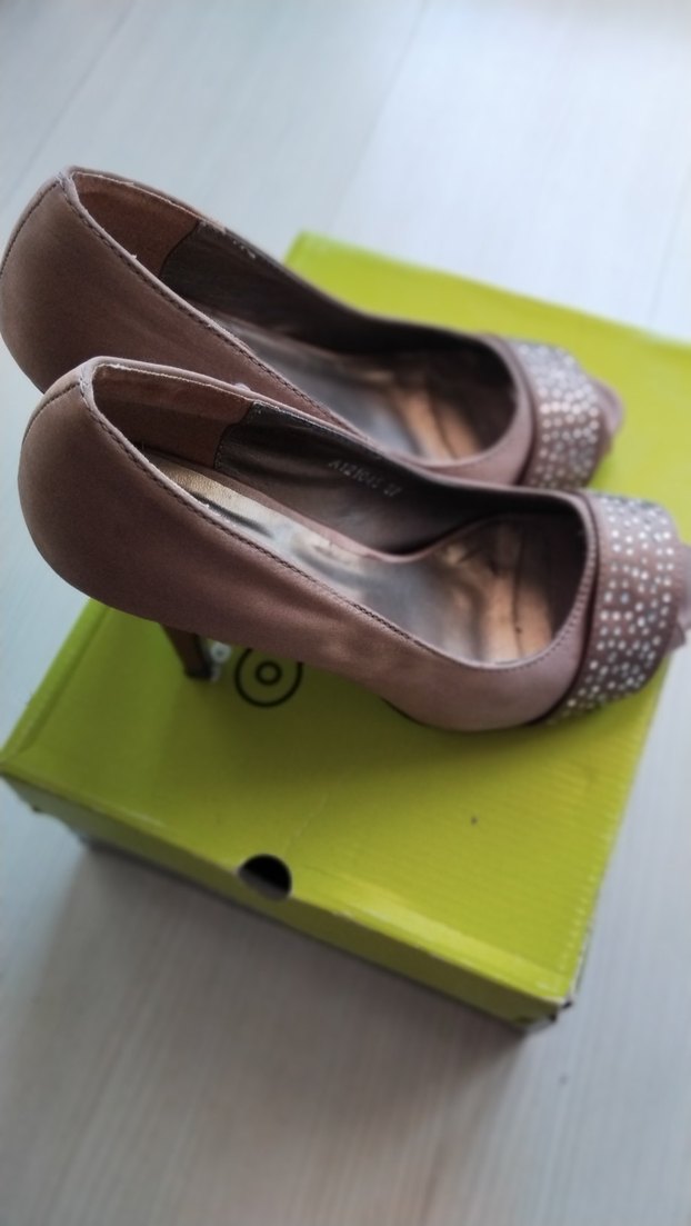 Bej renkte, tokalı detaylı topuklu ayakkabı. 37num ama 38 num gıyenler tercih edebilir. Topuk boyu 9_10cm