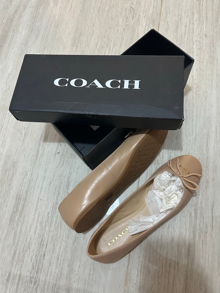 Bej renkli, fiyonk detaylı kadın babet ayakkabı. Kauçuk malzemeden, COACH markalı ve ofis kullanımı için uygun. Hiç kullanmadım yurtdışından sipariş verdim ama numarasının yanlış anlaşılmadan dolayı ayağıma çok büyük geldiği için, giyemiyorum. Taban 29 cm dir41-41.5 olan ayağıma büyük geliyor. Alacak kişi ona göre alsın. 42 ve üzeri ayağ sahip olanlar düşünsün