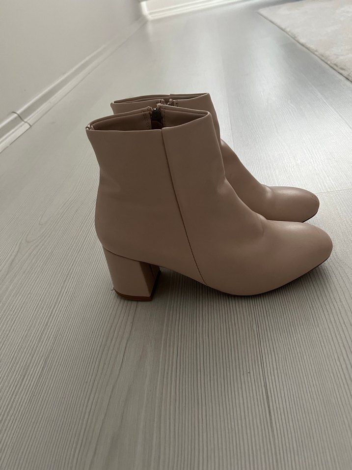 Bej renk, kısa topuklu bot. Hiç kullanmadım. Taşındığımızda yıpranmalar oldu sadece. Marjin mağazasından alınmıştır.