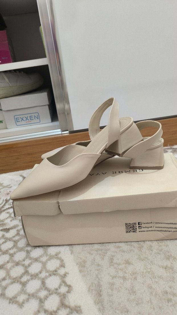Bej renkli, blok topuklu kadın ayakkabısı. Yumuşak kauçuk malzemeden, desen içermeyen, günlük kullanıma uygun şık ve çağdaş Paris tarzında.hiç kullanılmadı numarası küçük oldugu için satıyorum
