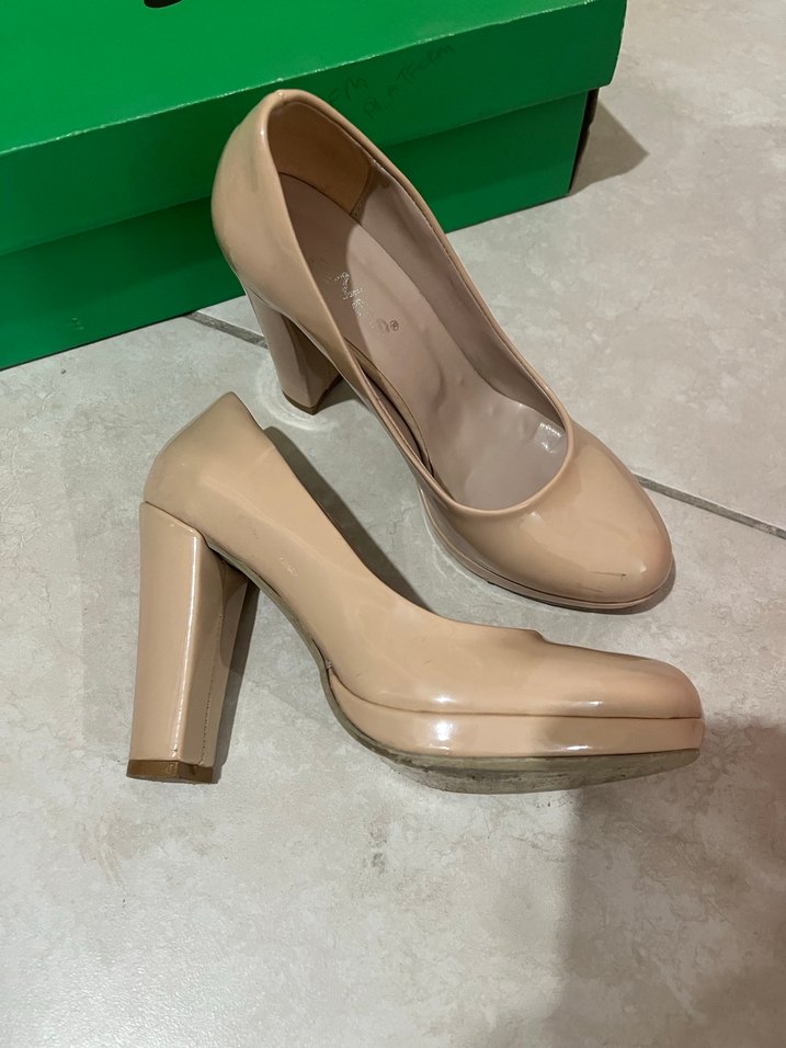 Bej Kadın Topuklu Stiletto Platformlu
