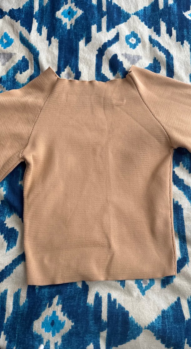 Bej renkli, vücuda oturan, uzun kollu ve boat neck yaka triko kazak. Yumuşak sentetik kumaştan, pastel tonlarda, rahat sokak stili için uygundur. Omuzları açık da kullanılabilir esnek kumaştır s ve m bedene uyumludur
