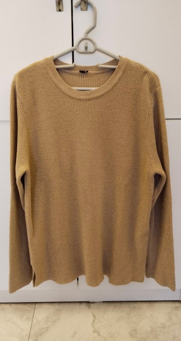 Bej renkli, yumuşak yün dokulu, yuvarlak yakalı ve uzun kollu triko kazak. Rahat kesimi ve normal boyu ile günlük kullanıma uygun, parlak görünümlü kazak.