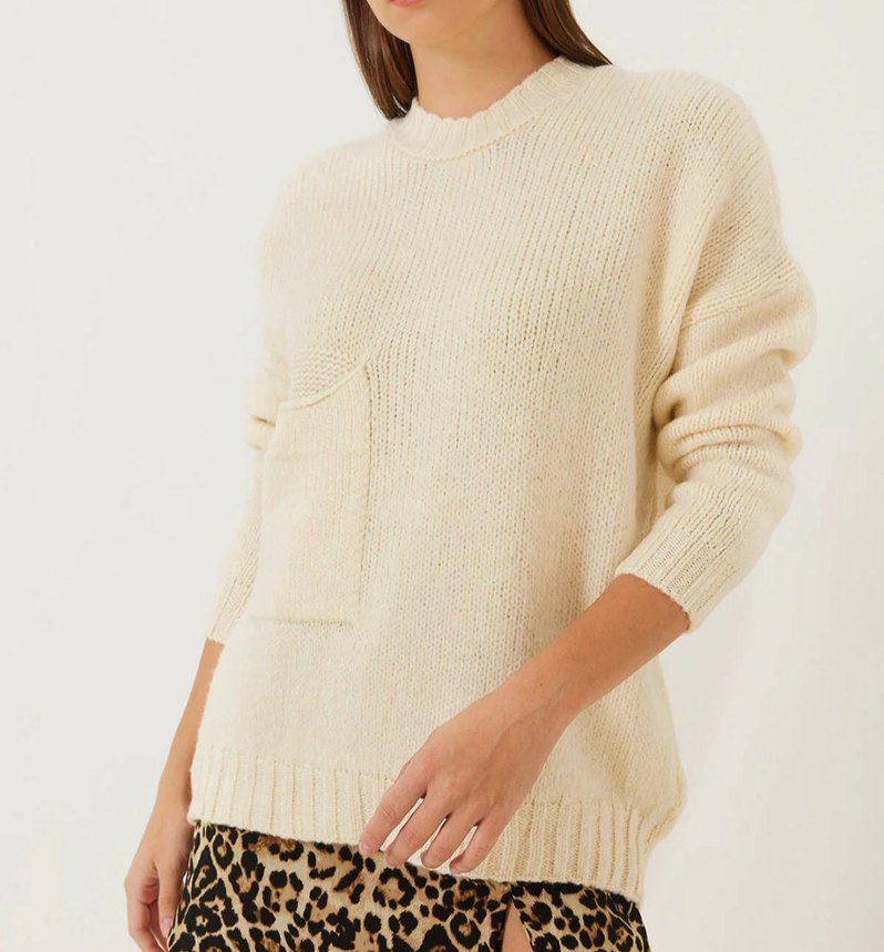 Bej renkli, yuvarlak yakalı ve uzun kollu kadın triko kazak, rahat kesim ve günlük kullanıma uygundur. Standart Beden