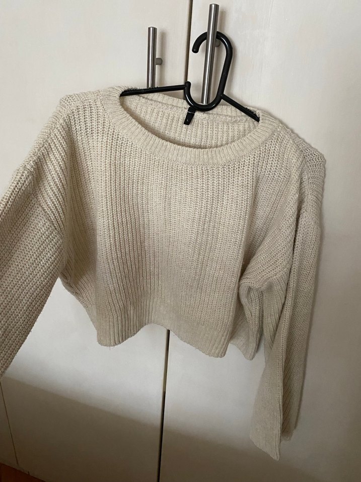 Bej renkli, bisiklet yaka, uzun kollu triko kazak. Salaş kesimi ve normal boyu ile günlük rahat kullanıma uygundur.