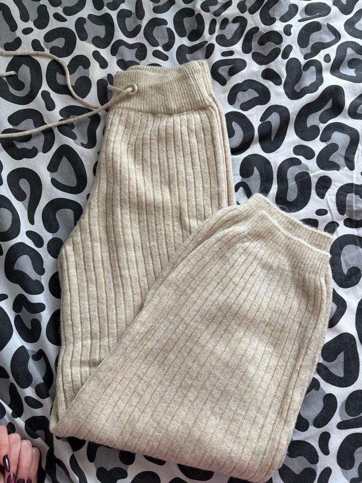 Bej renkli, triko kumaştan rahat kesim ve midi boy pantolon. Düz desenli, sokak stiline uygun, günlük kullanıma elverişli ve yumuşak dokulu.