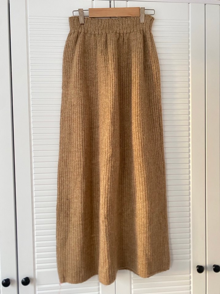 Bej renkte, yumuşak triko kumaştan örülmüş uzun etek. Bol kesim ve rahat bel bandı bulunur. Desensiz, günlük kullanıma uygun rahat bir model.