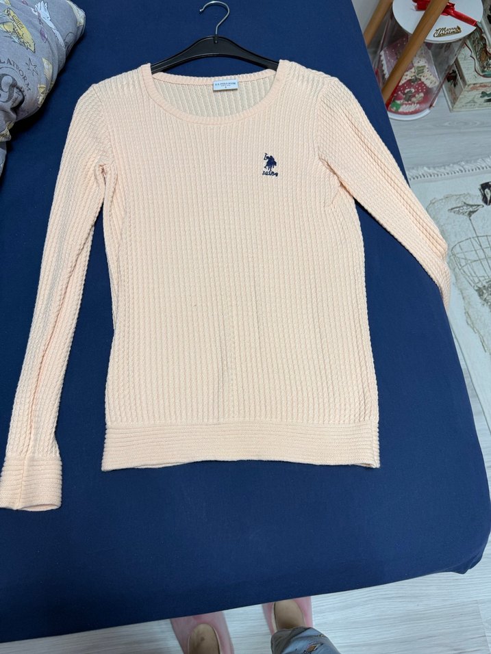 Bej renkli triko kumaştan, uzun kollu ve bisiklet yaka kadın kazak. Orta uzunlukta, rahat kesimli ve günlük sokak stiline uygun bir modeldir. Göğüs kısmında küçük logo detayı bulunur.