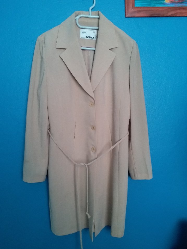 Bej Kadın Uzun Düğmeli İnce Ceket